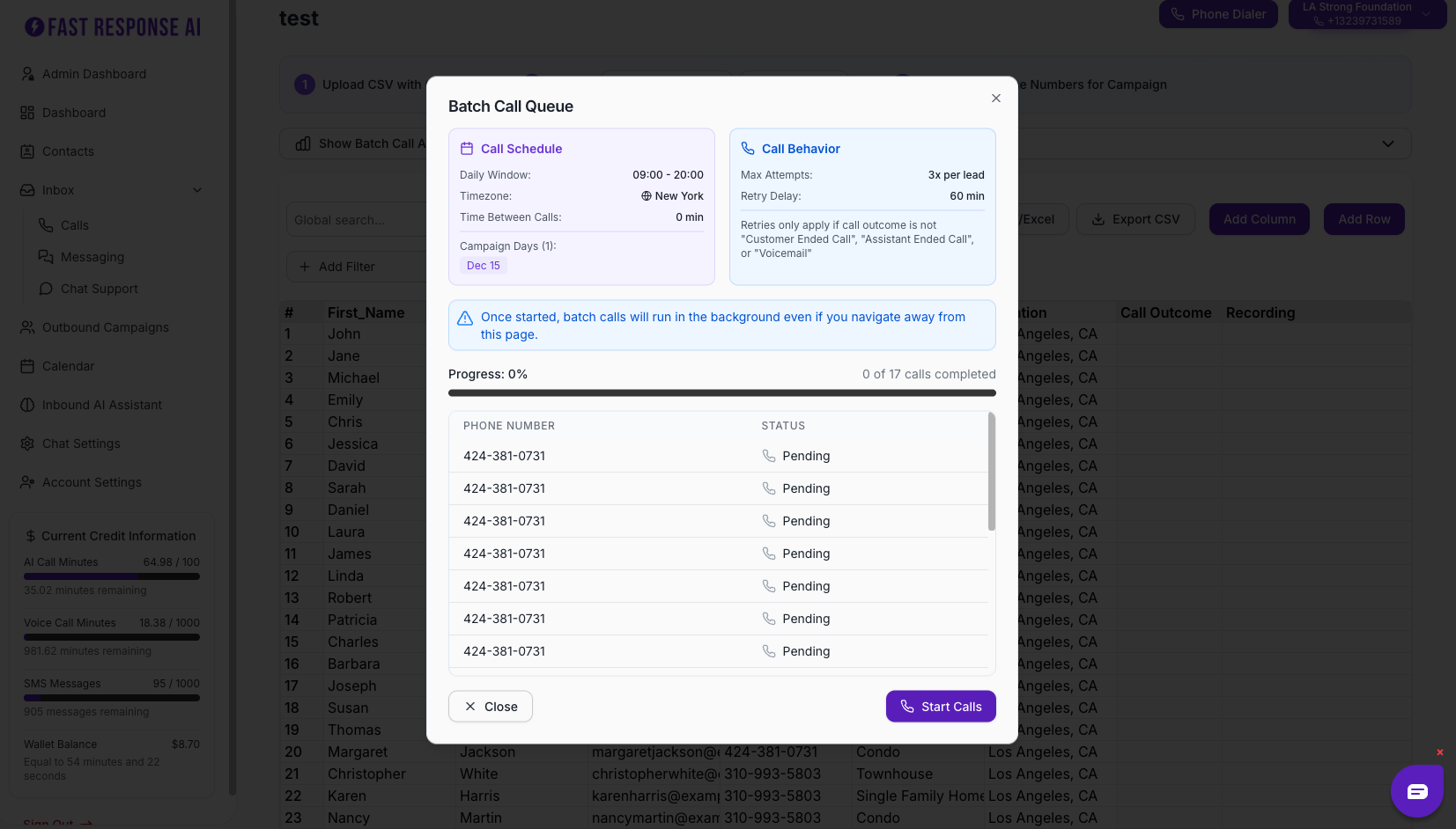 Upload a list of contacts into a campaign to make 100s of customizable calls effortlessly.