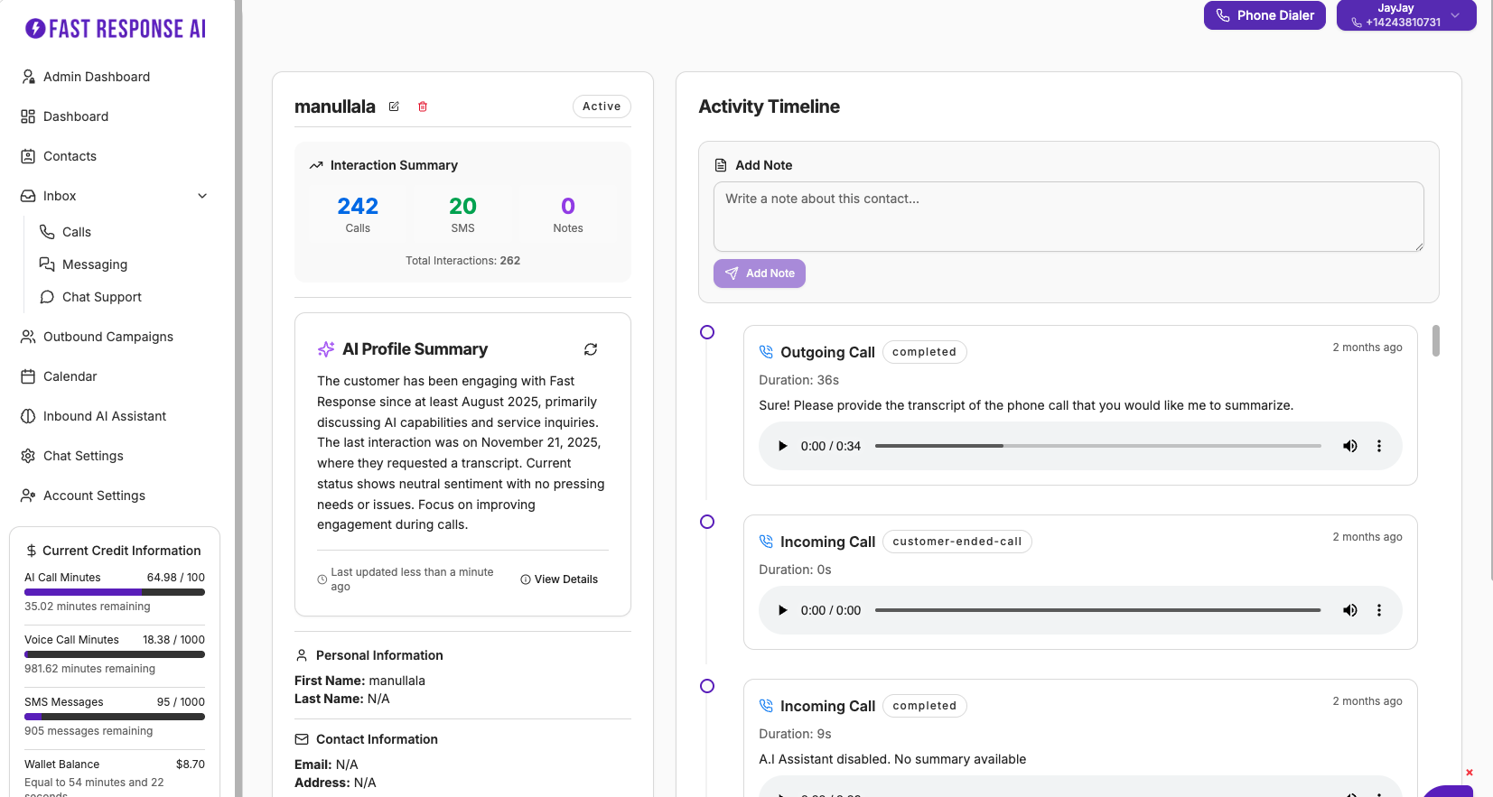 As soon as your AI handles a call you will get a notification by text and email with a summary and next step for the call.Â